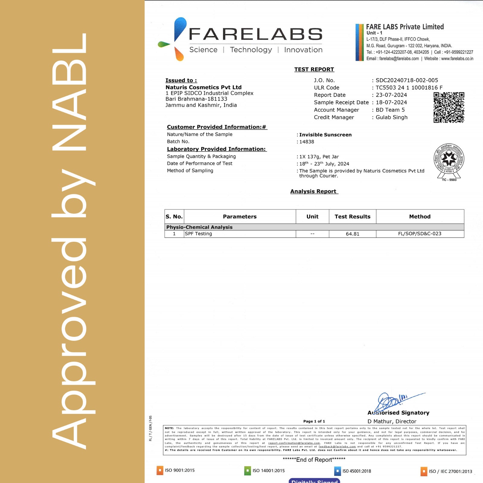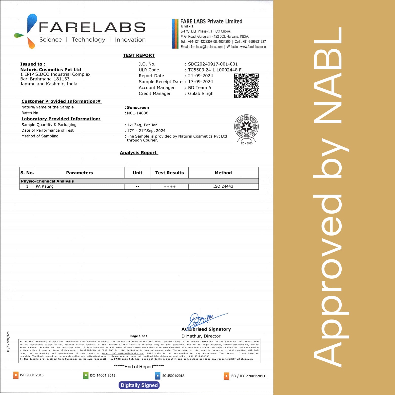 | Manufacturer | NATURIS COSMETIC, 1 EPIP SIDCO INDUSTRIAL COMPLES BARI BRAHMANA JAMMU 181133 |